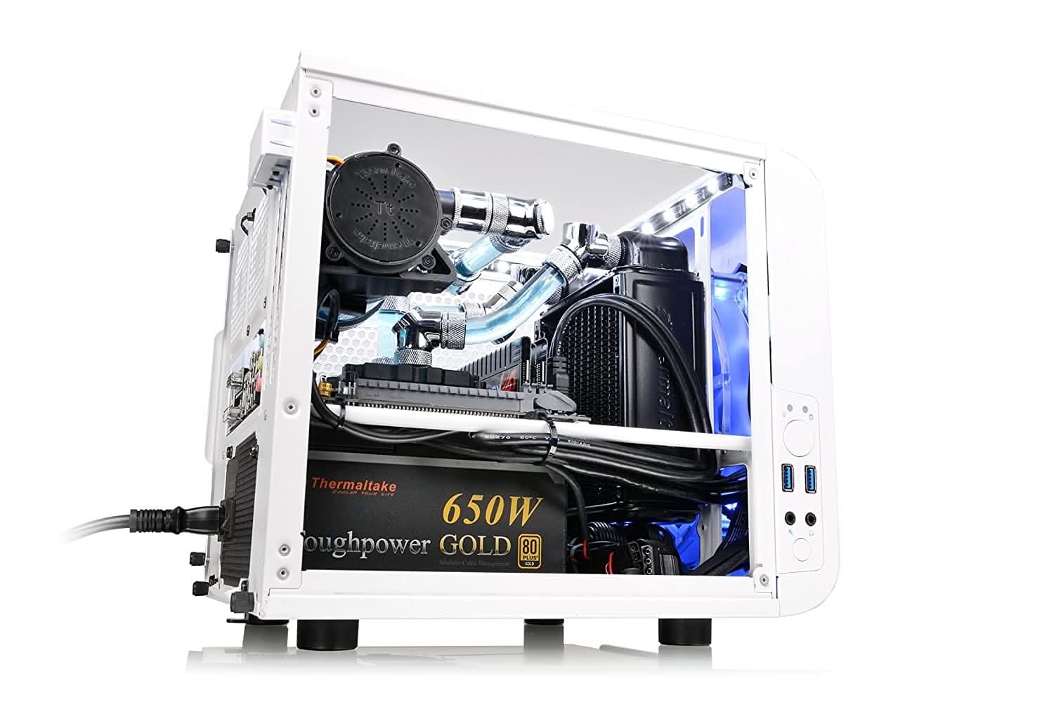 The new Core V1 Snow is a small and cute ITX based chassis with a 200mm fan in the front panel. Smart interchangeable side panels allow users to flip it accordingly to showcase either for superior liquid cooling or superb airflow, which allows you to make your own personal setup. You not only grant to have a really powerful mini system, it also has the ability to house various overclocking components to keep it really cool!