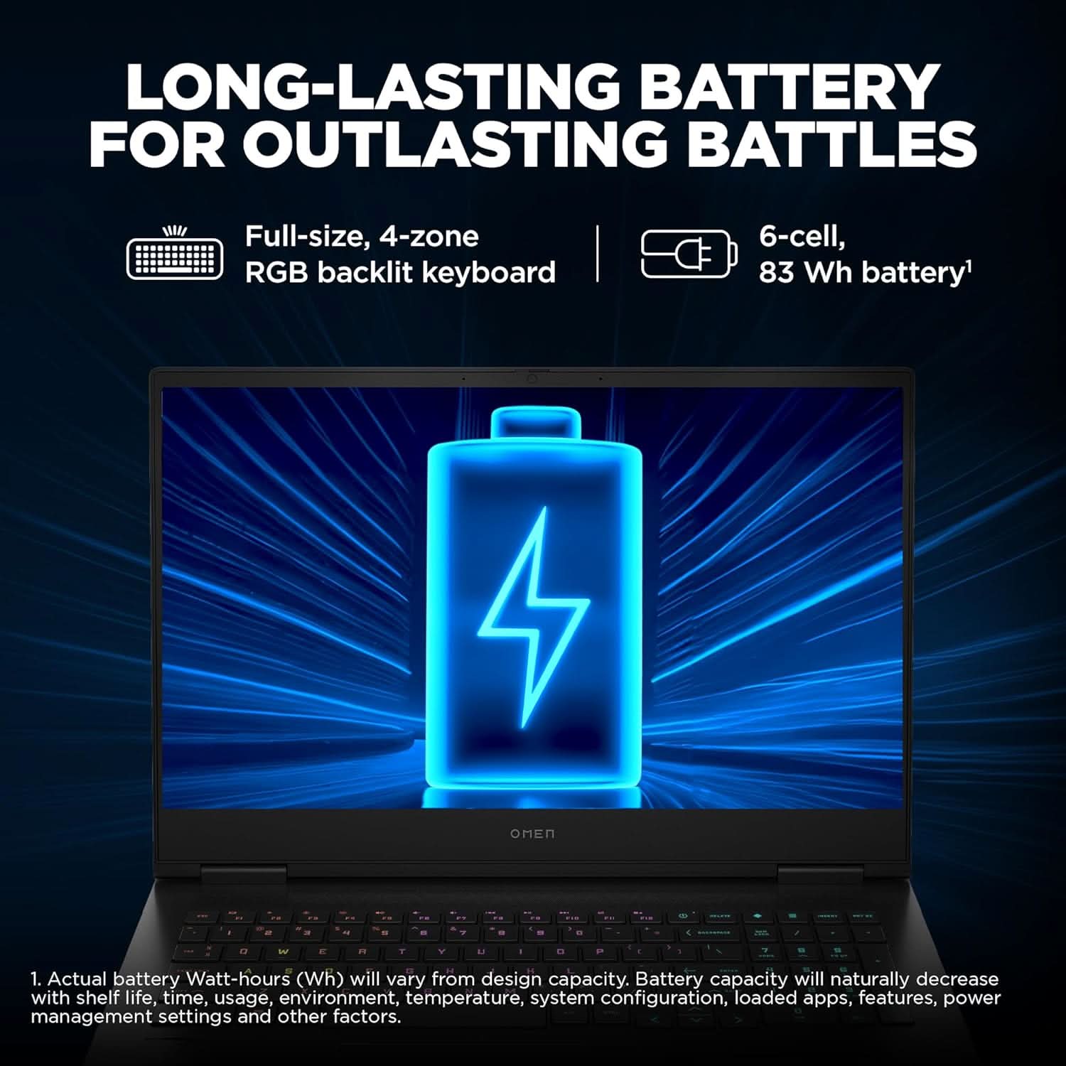 - 【Long battery life】Fast charge up to 50% in 30 mins and get back to your squad in no time. Benefit from a 6-cell, 83Wh battery that is perfect for extended gaming sessions.