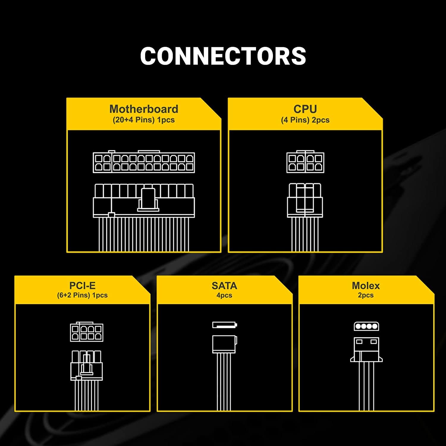 | Connector | Motherboard ñ (20+4 Pins) x 1pcs |