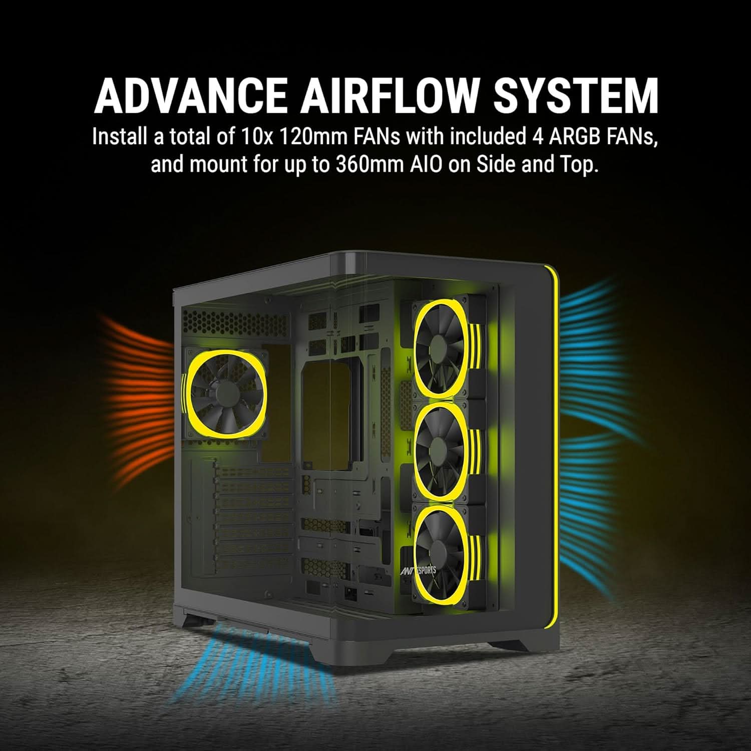 - Great Cooling and Airflow Options With 4 Pre-Installed ARGB-PWM Fans and up to 360mm Radiator Mount on the Top and Side, get optimal bottom-top updraft of airflow.