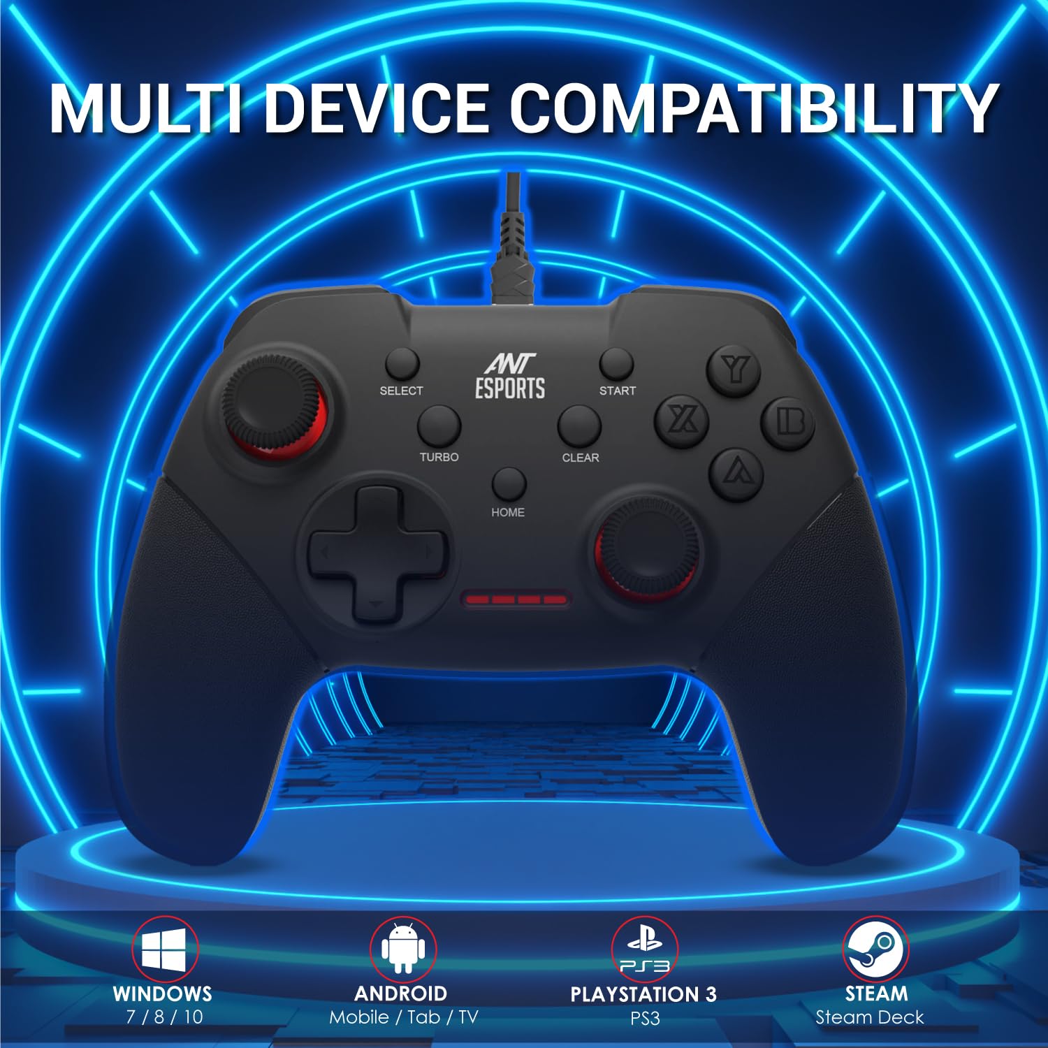 The Ant Esports GP100 Gamepad is designed with precision and made for excellence. Made with premium grade ABS plastic and textured rubber grips on the joysticks the GP100 ensures solid build quality and to the point precision especially in one on one battles where joystick control is of prime importance. The ergonomically constructed shell makes it fit in every hand and can be used for marathon gaming sessions by offering higher degree of comfort and breathability to avoid sweating in palms. Plug and play USB 2.0 interface and multiple mode support for X input, Direct Input and Android makes it the perfect choice for PC, console and mobile gamers alike.