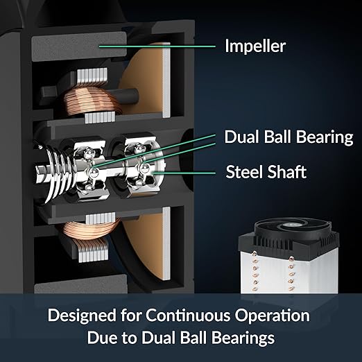 Both fans of the Freezer 4U-M are equipped with dual ball bearings, which allows for 24/7 continuous operation without the slightest compromise in performance. This type of bearing is much more resistant to contamination and wear caused by high temperatures than conventional sleeve bearings or Fluid-Dynamic bearings and is therefore the perfect choice if you want to ensure fault-free continuous operation.