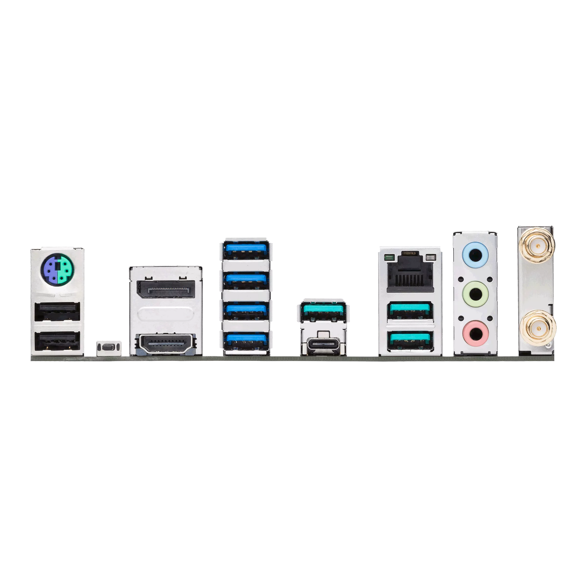 | Back Panel I/O Ports | 1 x USB 3.2 Gen 2x2 port (1 x USB Type-C ) 3 x USB 3.2 Gen 2 ports (3 x Type-A) 4 x USB 3.2 Gen 1 ports (4 x Type-A) 2 x USB 2.0 ports (2 x Type-A) 1 x DisplayPort 1 x HDMI port 1 x Wi-Fi Module 1 x Realtek 2.5Gb Ethernet port 3 x Audio jacks 1 x BIOS FlashBack button 1 x PS/2 Keyboard/Mouse combo port |