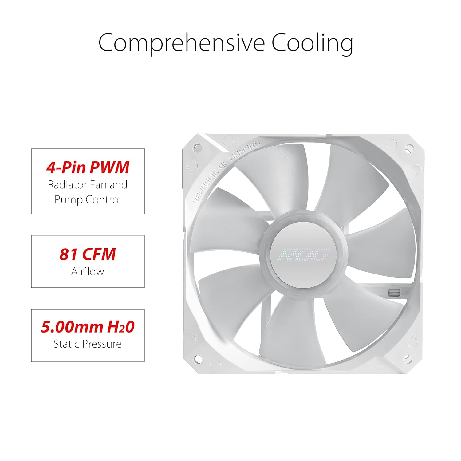- Three ROG-designed radiator fans provide optimized airflow and static pressure.