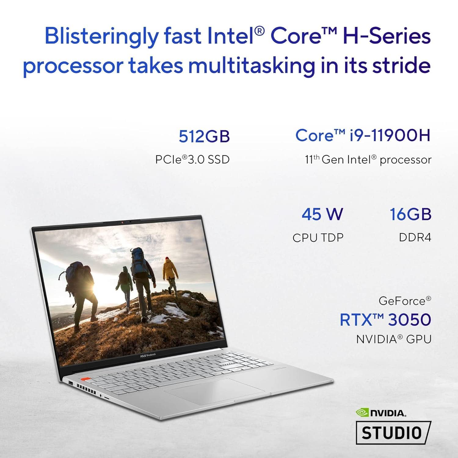 ASUS VIVOBOOK PRO 16, INTEL CORE I9 11TH GEN, 16 INCH (40.64 CM) FHD+ 120HZ, THIN & LIGHT LAPTOP (16GB/512GB SSD/4GB RTX 3050/WIN 11/OFFICE 2021/ALEXA/BACKLIT KB/FP SENSOR/SILVER/1.9 KG), K6602HC-N1902WS
