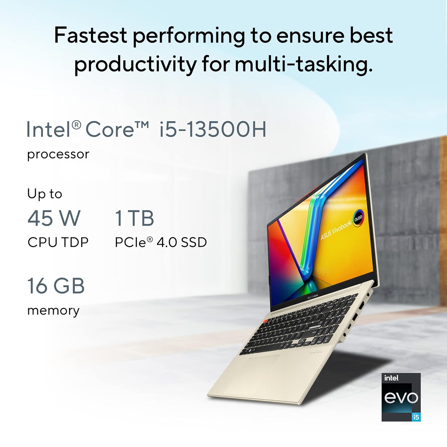 ASUS VIVOBOOK S 15 OLED (2023), INTEL CORE EVO I5-13500H 13TH GEN, 15.6" (39.62 CM) 2.8K 120HZ OLED, THIN & LIGHT LAPTOP (16GB/1TB SSD/IRIS XE/WIN 11/OFFICE 2021/75WHR/WHITE/1.7 KG), S5504VA-MA554WS