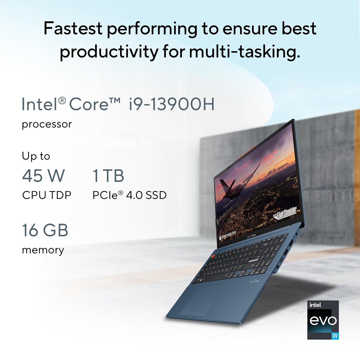 ASUS VIVOBOOK S 15 OLED, INTEL CORE I9-13900H 13TH GEN, 15.6" (39.62 CM) 3K OLED, THIN AND LIGHT LAPTOP (16 GB RAM/1TB SSD/WIN11/OFFICE 2021/BACKLIT/FINGERPRINT/75WHR /BLUE/3.75 KG), S5504VA-MA951WS