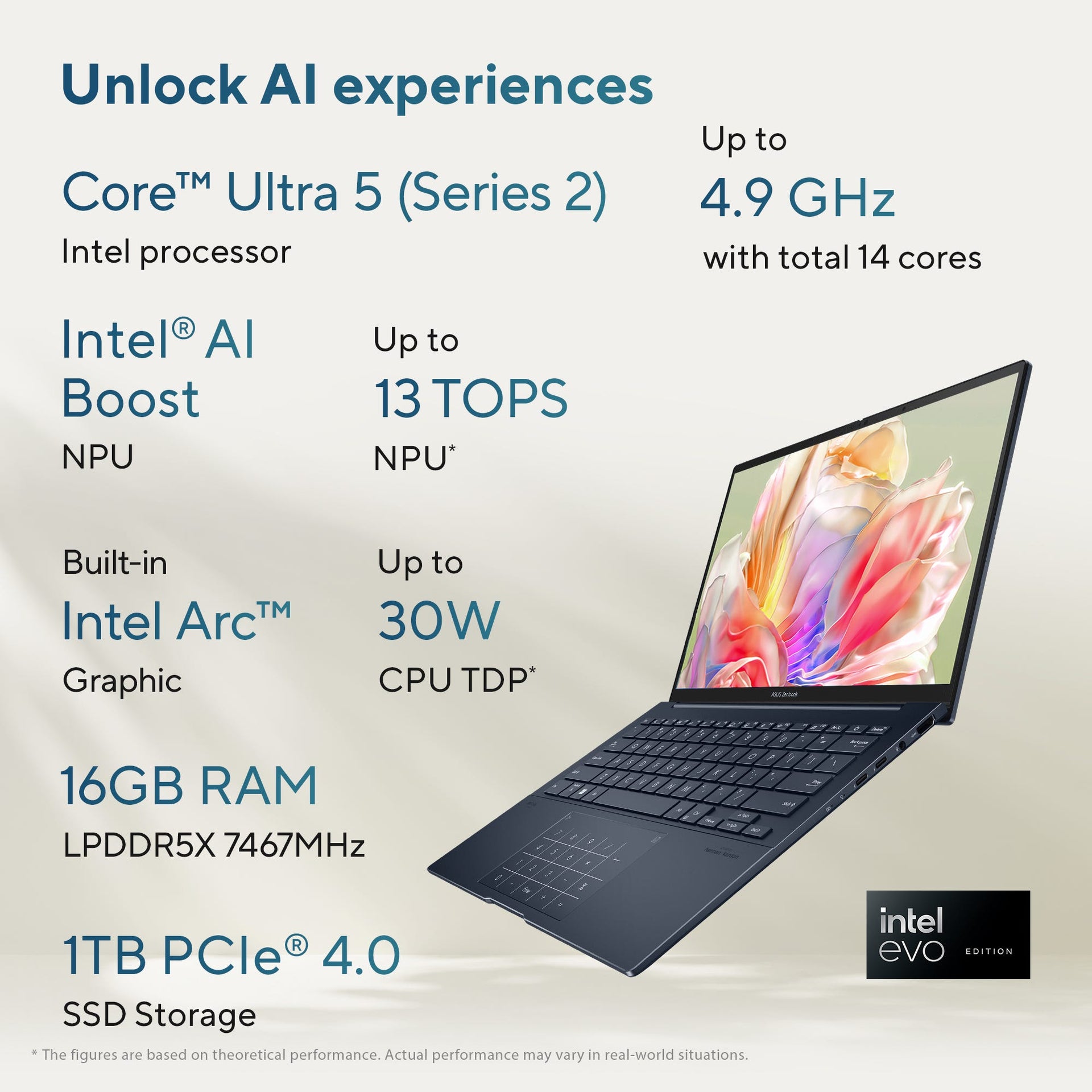 - Graphics : Integrated Intel Arc Graphics | Neural Processor : Intel AI Boost NPU up to 13TOPS