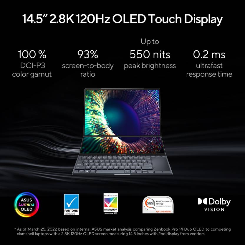 ASUS ZENBOOK PRO 14 DUO OLED FOR CREATOR, INTEL H-SERIES INTEL CORE I5 13TH GEN 13500H - (16 GB/1 TB SSD/WINDOWS 11 HOME/6 GB GRAPHICS/NVIDIA GEFORCE RTX 4050/120 HZ/65 TGP) UX8402VU-MZ551WS GAMING LAPTOP (14.5 INCH, TECH BLACK, 1.75 KG, WITH MS OFFICE)
