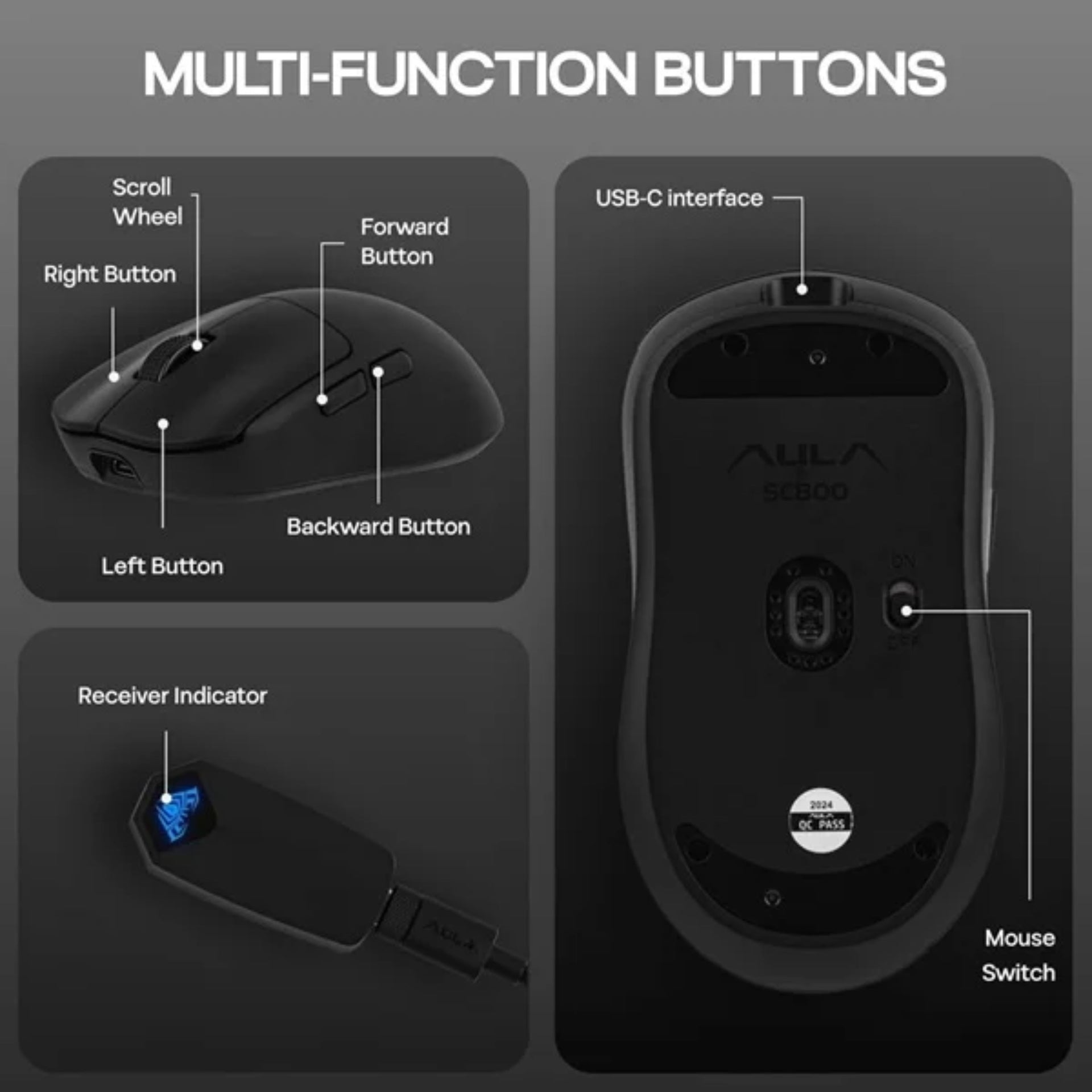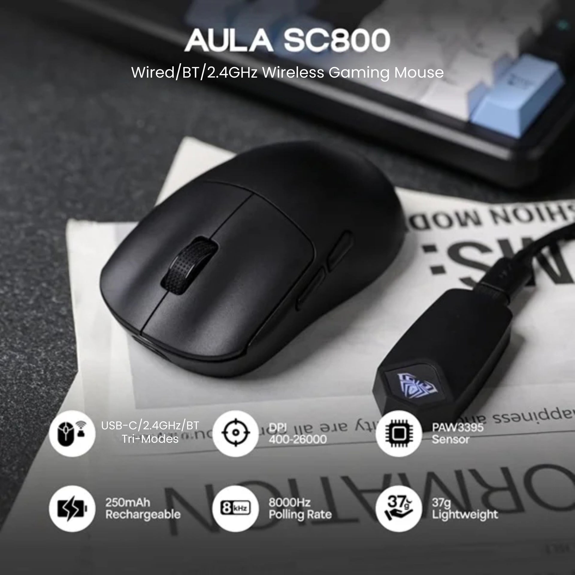 Aula Tri Mode Light weight Wireless Gaming Mouse