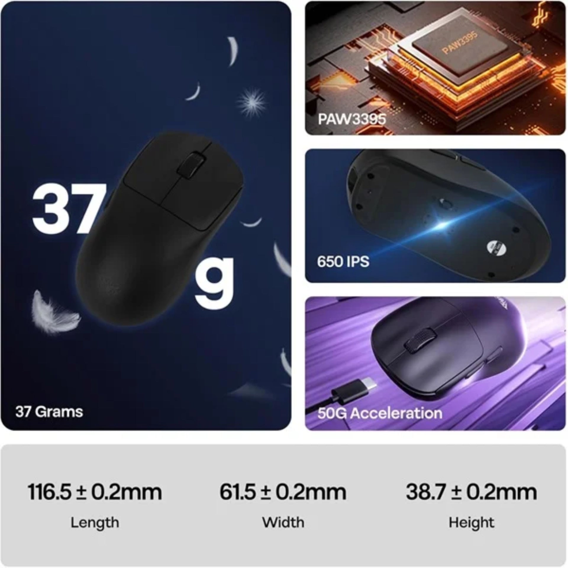 - Mouse size: 116.5×61.5×38.7±0.2mm