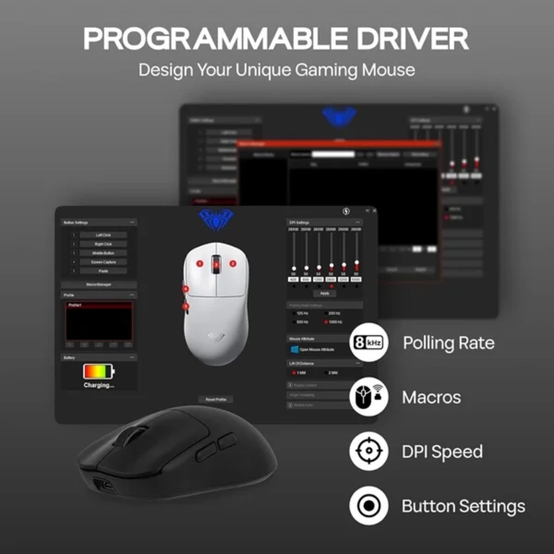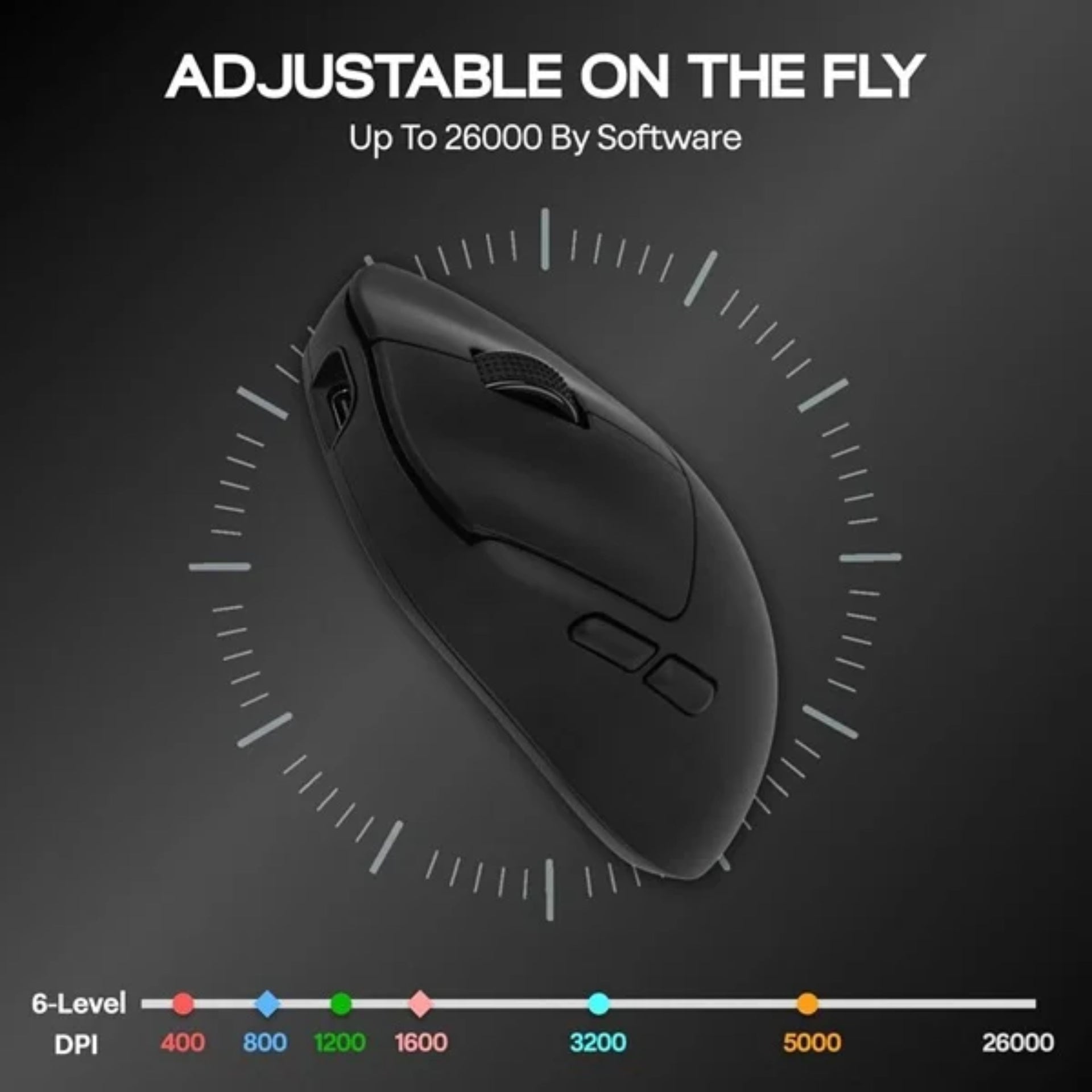 - DPI: 400DPI – 800DPI – 1200DPI – 1600DPI – 3200DPI – 5000DPI – 26000DPI