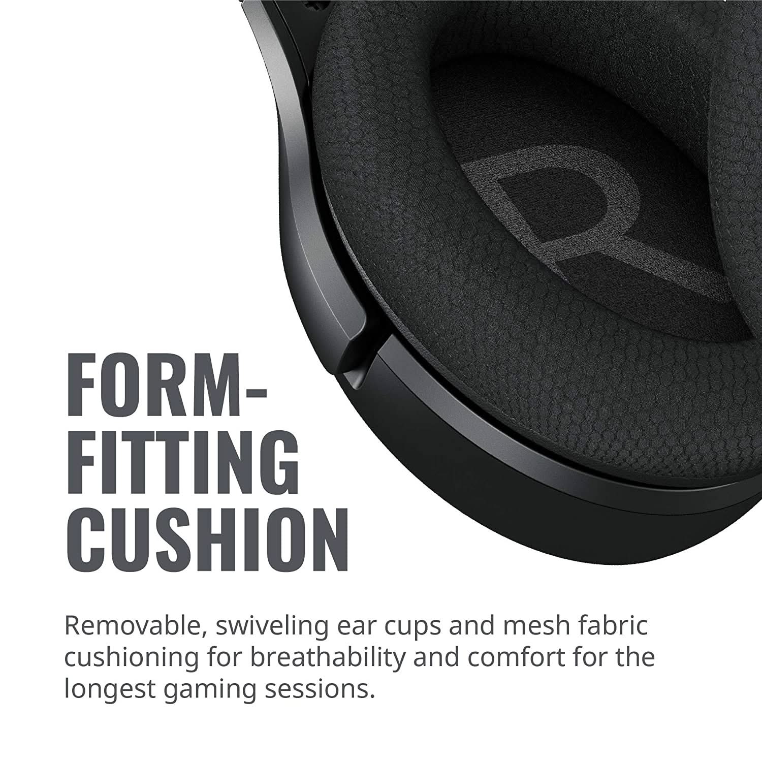 - Form-Fitting Cushioning - Removable, swiveling earcups and mesh fabric cushioning for breathability and comfort for the longest gaming sessions.