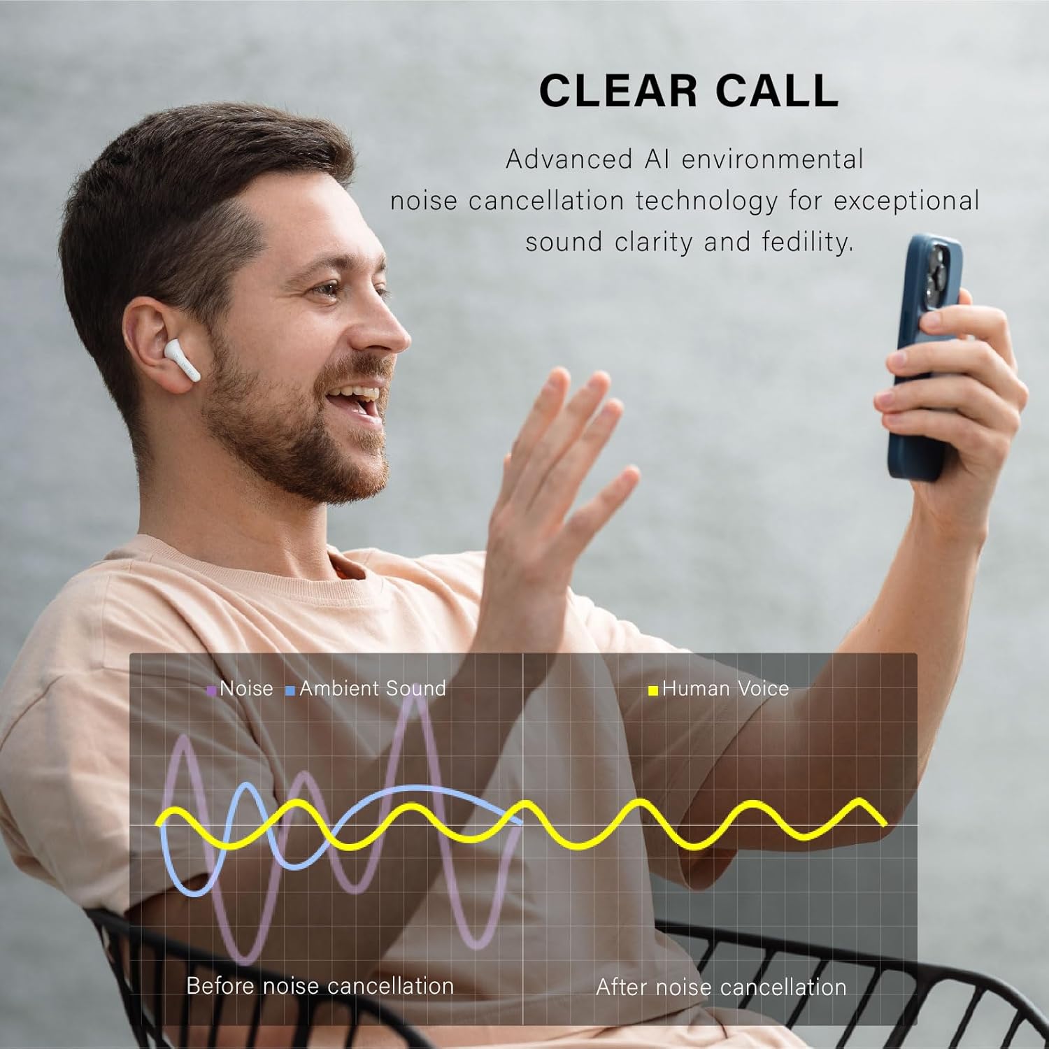 - AI Algorithm Enviromental Noise Cancellation Clear Sound Quality Equipped with the new-generation algorithm, the earbuds can be used in multiple scenarios to reduce environmental noise, enhance human voice, and improve sound clarity and fidelity. Even in a noisy environment, you can enjoy clear calls.
