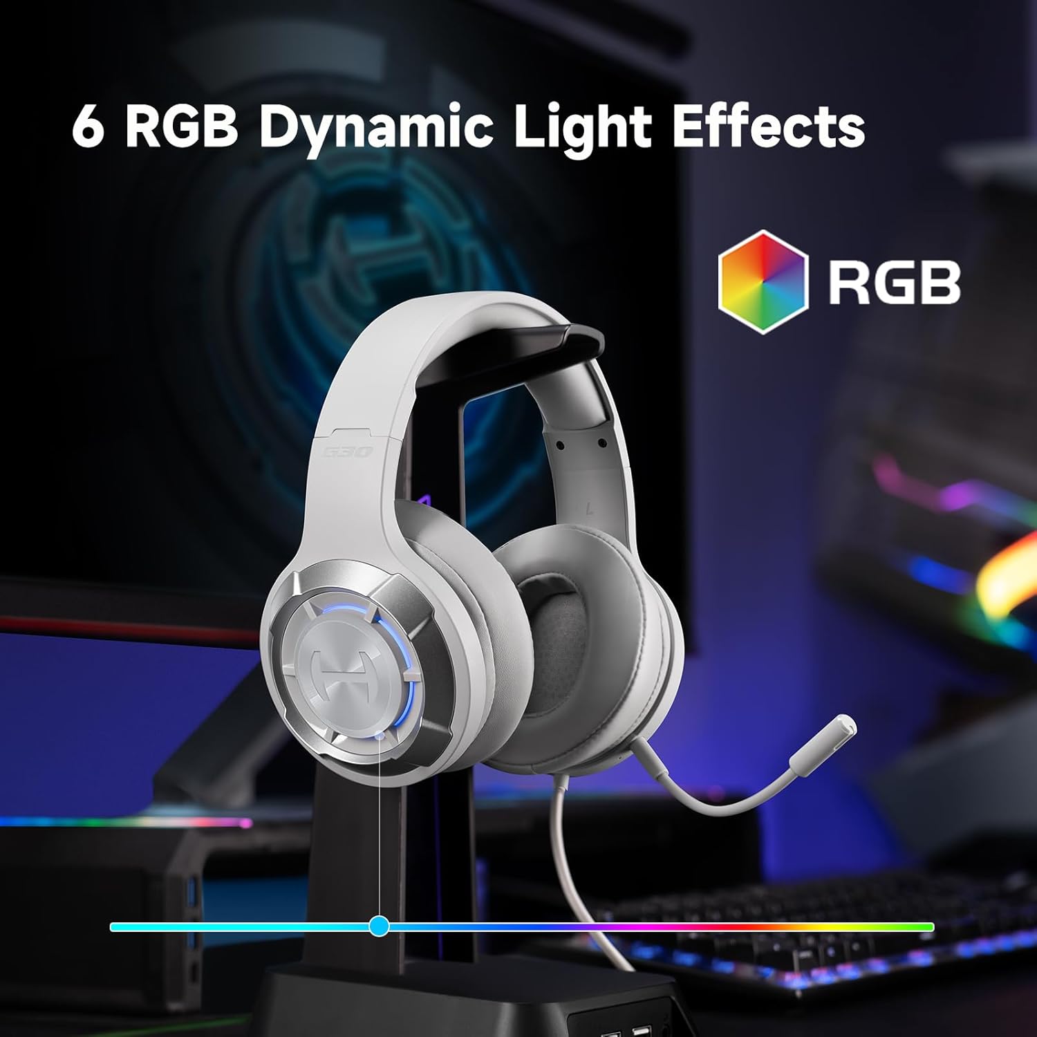 - [Spatial 7.1 Virtual Surround Sound] Explore a new game world when HECATE G30II gaming headset provides you immersive sound to accurately locate the enemy or key clues [Noise Isolating Microphone] The 360°onmi-directional microphone enables to pick up clear sounds with noise removed, accurately transmitting your messages in intense game [RGB Effect lighting] 6 types of dynamic RGB Lights on the ear cups turns your game experience up a notch. Multi-platform compatible with PC, PS4,PS5, Mac, Laptop, Desktop with USB connection. Notice: not compatible with Xbox