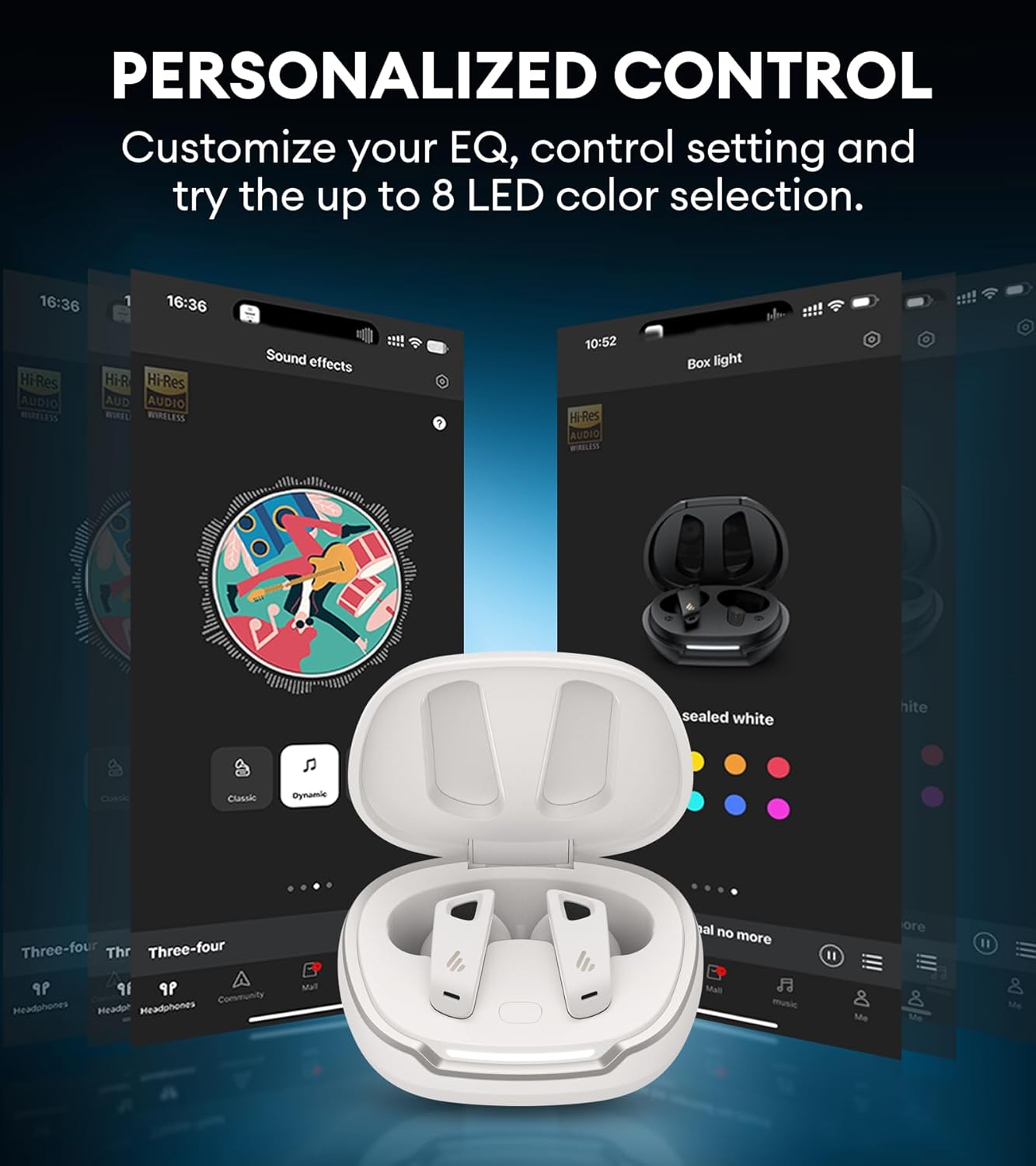 - True Wireless Noise Cancellation In-Ear Headphones EDIFIER WIDE-BAND MULTI-CHANNEL ANC for wider & deeper ANC Premium sound with Hi-Res Audio Wireless certified and LDAC, achieve 192K/24bit audio over Bluetooth for the first time Spatial audio with visualized head-tracking Perfect call quality with 4+4 microphones beam-forming algorithm solution Intelligent Wearing Detection Edifier Connect APP to customize your EQ, control setting and try the up to 8 LED color selection