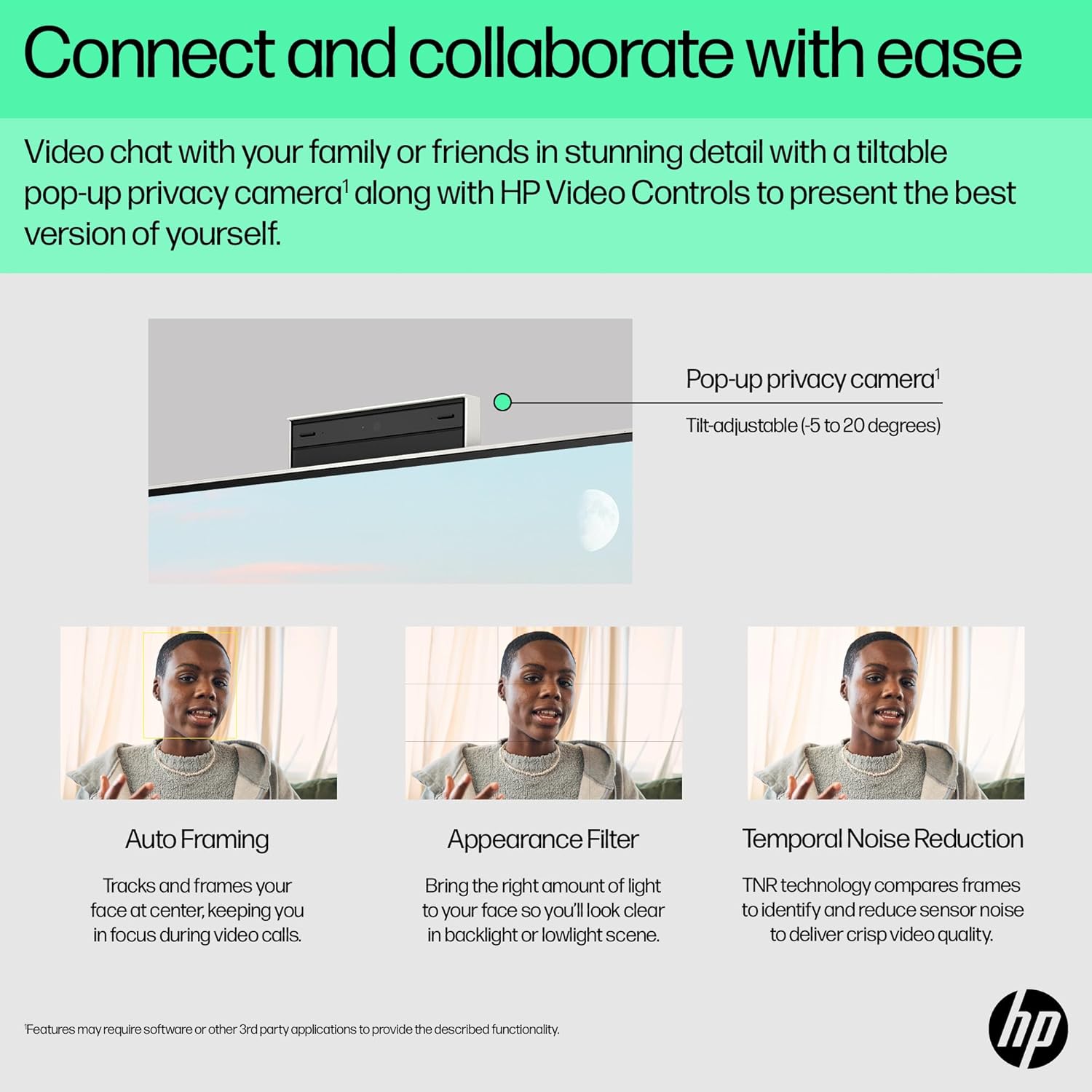 - Features: Camera: HP True Vision 1080p FHD IR tilt privacy camera with temporal noise reduction and integrated dual array digital microphones|Keyboard: HP 510SP White Wireless Keyboard and Mouse Combo| Graphics: AMD Radeon Graphics| Wireless Networking:Realtek Wi-Fi 6 (1x1) and Bluetooth 5.3 wireless card