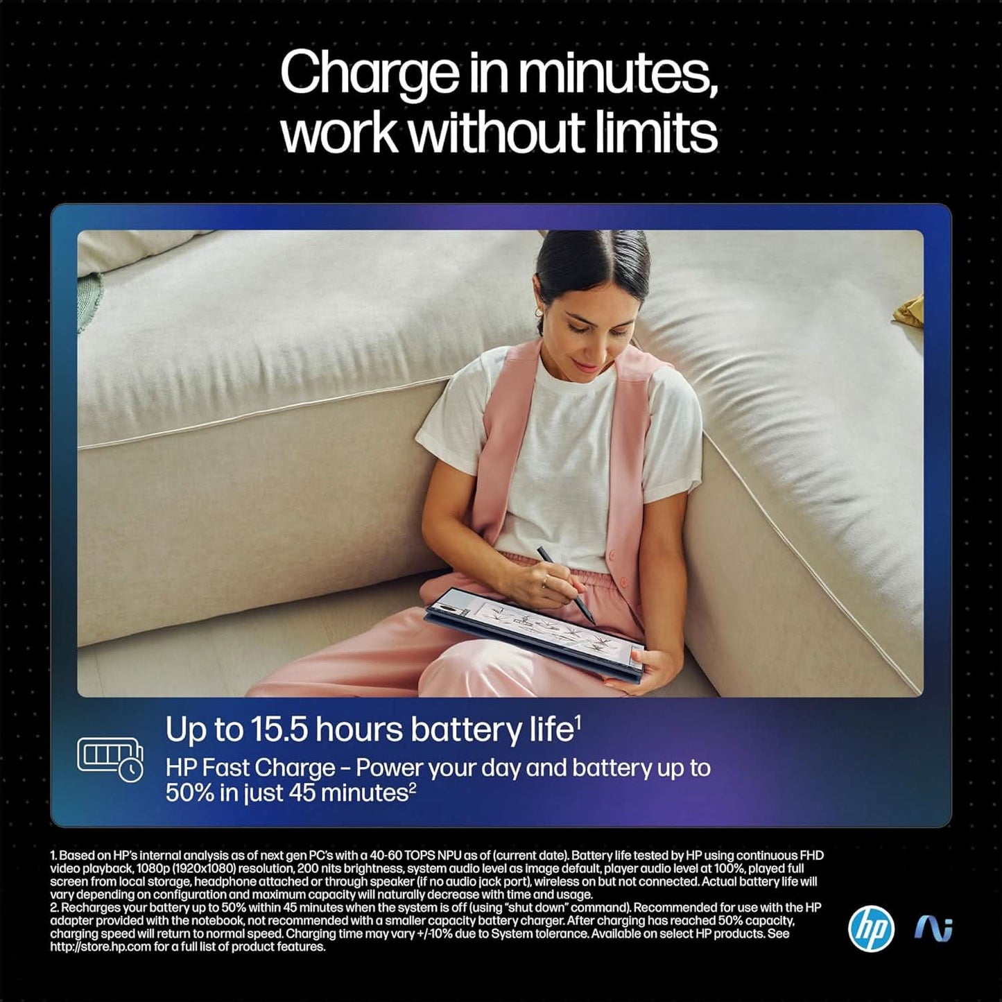 - 【Long battery life】Go all day long with the 6-cell, 64Wh battery that keeps you powered for up to 15 hours and 30 mins. No time to pause and wait? Charge your device up to 50% in 45 mins.