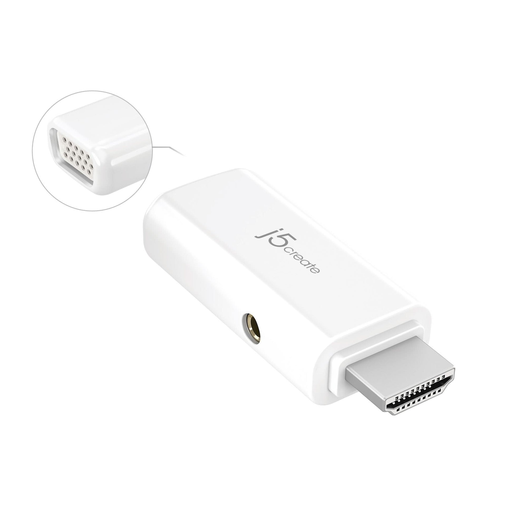 Our HDMI™ to VGA adapter allows you to connect the HDMI™ output from your laptop, Ultrabook™, desktop, tablet, Blu-ray™ DVD, digital set-top box, video camera or gaming console to the VGA input of a monitor or projector. This adapter supports resolutions up to 1920 x 1080, eliminating the expense of upgrading to an HDMI™ display for the sake of compatibility. The JDA203 can also increase your productivity by extending your computer's desktop onto a secondary monitor, doubling available workspace. This adapter has a high quality, compact design for long-term durability and a minimal footprint.