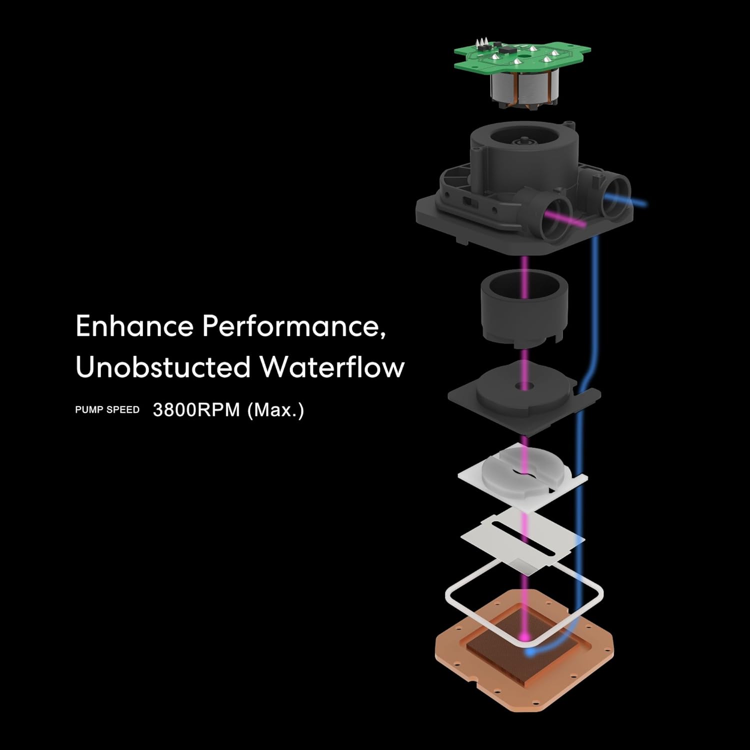 - Class Leading Pump and Radiator FAN Specifications 2700 RPM Pump, which rivals the performance of the latest Gen Pumps, with 2200 RPM, Non-RGB, 120mm FANs with 73.53 CFM Airflow and 4.5 mmH2O of Static Pressure, delivers class-leading cooling performance.