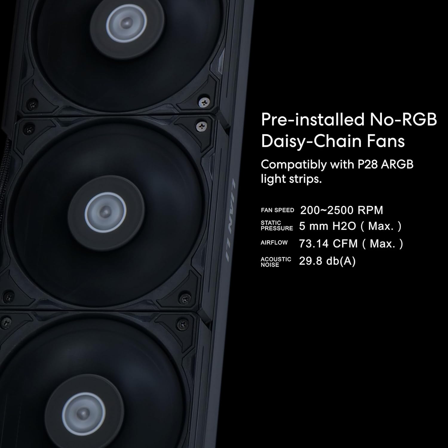 - Minimalistic Connection, Ease of USE! Only two PWM ports are needed for cooler connection, the wire-free daisy chain FANs connect together into a single 4-Pin PWM connector, and another 3-Pin PWM connector on the Pump Block.