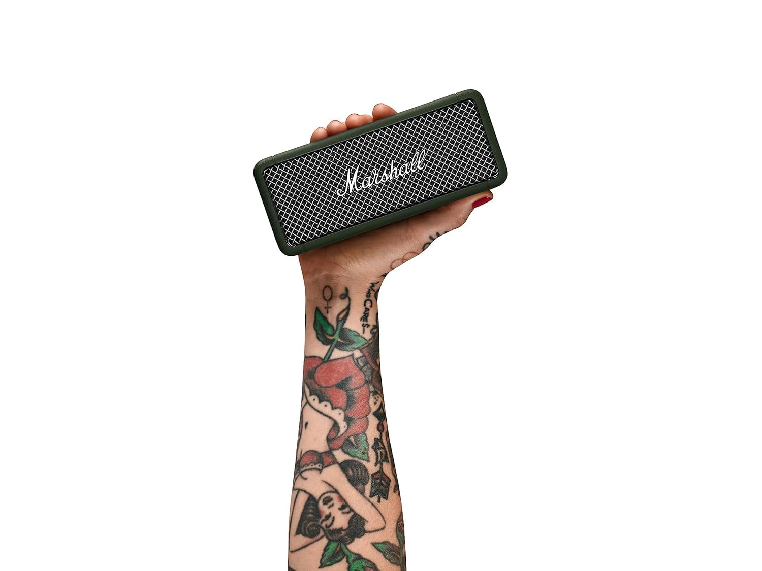 - Rich, clear and loud, like the artist intended. Emberton utilises True Stereophonic, a unique form of multi-directional sound from Marshall. Experience absolute 360° sound where every spot is a sweet spot.