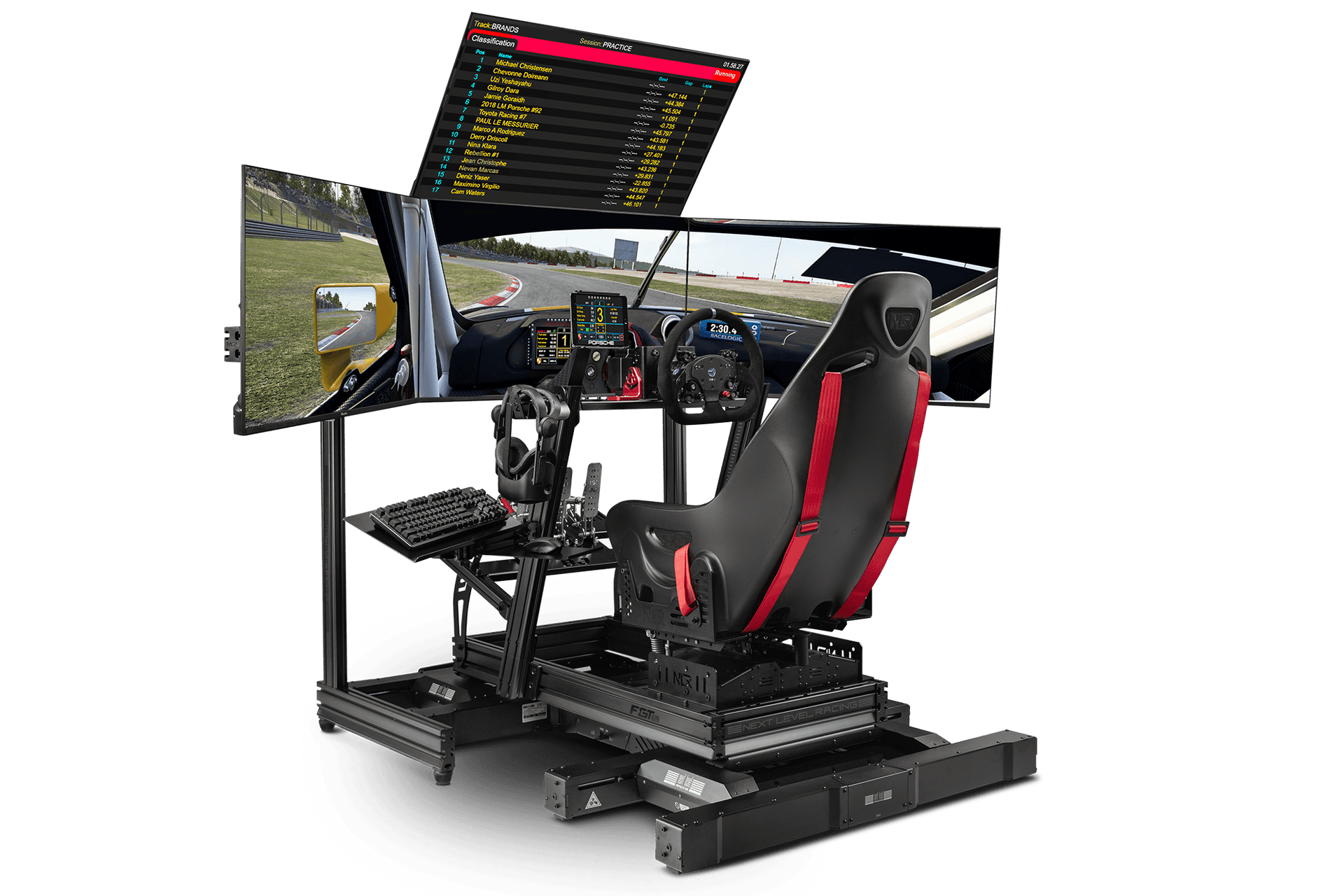 - Next Level Racing proprietary end caps and bespoke black powder coated hardware included; Features Next Level Racing custom cable management solution